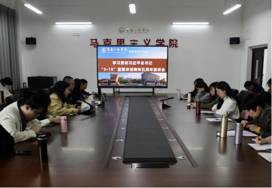 会上,学院组织全体教职工重温习近平总书记“3.18”重要讲话精神,思政课教师代表作交流发言。