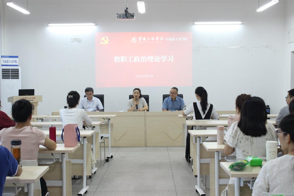 在教职工会议上,党总支副书记、副经理任鹏对教学、科研等工作进行了布置。学院经理兼党总支副书记徐承英对研究生及本科生教学、思政课教师集体培训等工作进行了强调,要求全体教师要以习近平总书记对学校思政课建设的重要指示为标尺,全面落实立德树人根本任务,努力提高业务素质,深入研究、潜心教学,推动思想政治理论课教学水平向更高目标迈进。